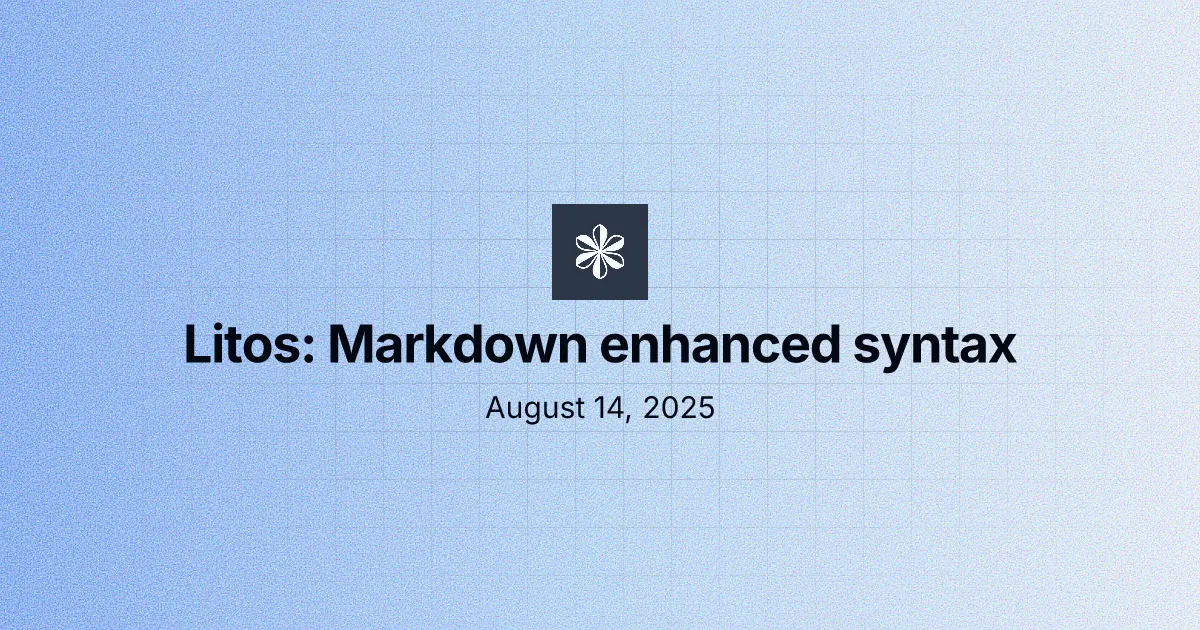 阅读更多 2025年8月12日 Markdown 增强语法 通过提示框、Expressive Code 代码块、图片标题指令、视频嵌入、样式链接、徽章和详情增强 Markdown。 推荐 Litos文档
